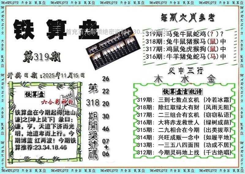 | 318期 | 1.2.3 | 2.3.5.6.8 | 开:鼠06中 |